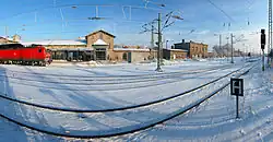 Angermünde station is a transportation hub in the city of Angermünde in the northeast of the German state of Brandenburg. The station opened on 15 November 1842 on the Stettin Railway between Berlin and Szczecin and is the starting point of the Angermünde-Stralsund line to Stralsund, the Angermünde-Schwedt line to Schwedt and a disused branch line to Bad Freienwalde.