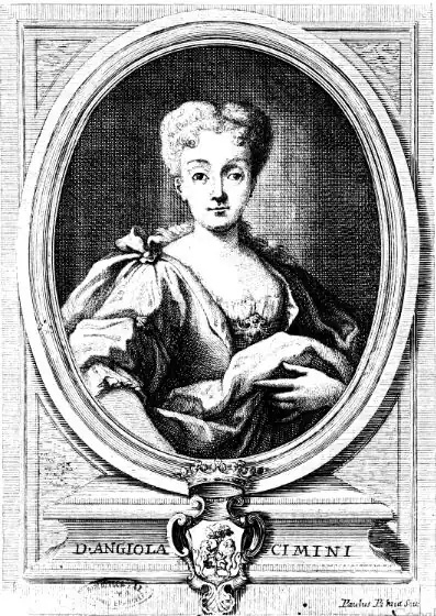 Angiola Cimini (1700-1727) was the daughter of Italian nobleman, Giuseppi Cimino, avvocato fiscale del real patrimonio, and of Anna d'Arieta-Crespo, member of a noble family from Castigliana.[1] She is most famous due to her friendship with the philosopher Giambattista Vico. He wrote a eulogy for her funeral in 1727 that is stated to be a "gem of eloquence", Angiola died at the age of 27.[2]: 169  Sent to a school for Spanish noble ladies, Angiola was adored among her schoolmates for her ability to heal their ailments.[2]: 171  She married to become the Marchioness of Petrella.