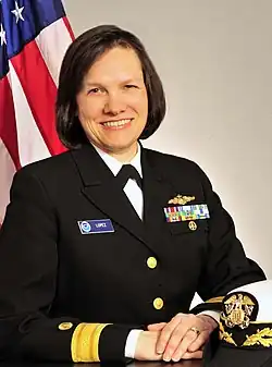 Anita L. Lopez is a former officer of the National Oceanic and Atmospheric Administration Commissioned Officer Corps. She last served as the deputy director of the NOAA Commissioned Officer Corps and deputy director for Operations of NOAA's Office of Marine and Aviation Operations.[1] She previously served as the commanding officer of NOAA's Marine Operations Center–Atlantic in Norfolk, Virginia from June 2012 to January 2014.[2] Lopez retired form the NOAA Corps on March 1, 2018.[3] Since 2018, she has been serving as the Director of Research Vessel Operations at the University of Hawaii and the Interim Director of Diversity Equity and Inclusion at the School of Ocean and Earth Science and Technology (SOEST).
