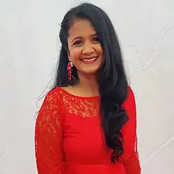 Anitha Karthikeyan (Tamil: அனிதா கார்த்திகேயன்) is an Indian Playback singer.[1][2] She has sung more than 500 film songs mostly in south Indian languages including Tamil, Telugu, Malayalam and Kannada. It was the song "Mannavane Mannavane" from the 2015 Tamil movie Puli which "has brought her to the limelight."[3] In the beginning, she sang more melodious and classical based tune songs, she later became known for fast track hit numbers.[4] In 2010, she won the Vijay Music award in the popular mass song category for the song "Vaada Vaada Paiya" from Tamil film Kacheri Arambam.[5] She is also known for singing Jingles for TV commercials.[4] Besides, she has sung title track for different TV Serials including the "Achuvellam Pacharasi Mavilakku" for Kula Deivam (TV series).[5] She has performed in numerous live concerts in India and abroad including in Ilaiyaraaja’s orchestras.[6][7][8]