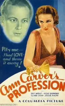 Ann Carver's Profession is an American pre-Code 1933 film directed by Edward Buzzell. It focuses on the relationship of a female lawyer and her husband, and on the strain that her financial success places on their marriage. The film stars actress Fay Wray and this film was made during the year she cemented her fame in King Kong. Although the writing credits differ, the film bears a striking resemblance in plot to Columbia's 1938 production The Lady Objects starring Lanny Ross and Gloria Stuart.[1]