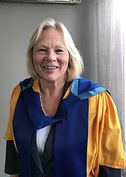Her academic honours include: Fellow Chartered Institution for Further Education,[30] Fellow of the Royal Society of Arts FRSA,[31] Fellow of the City and Guilds of London Institute (FCGI),[32] Inaugural Fellow of Milton Keynes College,[33] and Honorary Doctorates from Anglia Ruskin University,[34][35] University of Bedfordshire,[36][37] Open University,[38] Manchester Metropolitan University,[39] University of Northampton,[40] Sheffield Hallam University,[41][42] and University of West London.[43] She is a fellow-commoner of Lucy Cavendish College, Cambridge.[44]