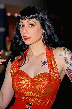 Anna Fur Laxis is an English pin-up model and burlesque dancer, particularly noteworthy for her extensive tattoos and her introduction of axe-throwing and other unusual skills into her work.[1] Her performances include residencies at Jeepers Peepers Burlesque (York, England) and Wet Spot (Leeds, UK), and have been acclaimed around the world. She also makes frequent appearances in print both as a model and as a celebrity, having appeared many times in 21st Century Pin-Ups magazine, Skin Deep magazine and Bizarre magazine.
