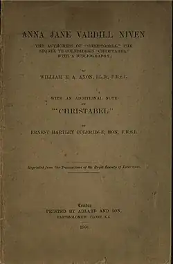 - ^ a b c "Vardill [married name Niven], Anna Jane (1781–1852), poet | Oxford Dictionary of National Biography". Oxford Dictionary of National Biography (online ed.). Oxford University Press. 2004. doi:10.1093/ref:odnb/45865. (Subscription, Wikipedia Library access or UK public library membership required.)