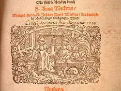 Wecker was first married to Israel Aeschenberger, town clerk in Altdorf near Nuremberg.[1] In 1572 their daughter Katharina married the scholar Nicolaus Taurellus. Following the death of her first husband, Wecker married the physician Johann Jakob Wecker (1528–1586) from Basel. He held the position of city physician (Stadtphysikus) in Colmar, where he also died. Two years after his death Wecker published Antidotarium Speciale, ex. opt. authorum … scriptis fideliter congestum et amplius triente actum in Basel. Even earlier, in 1586, she had authored a wedding poem for Jacob Pömer and Barbara Löffelholtz, signing as „Anna Kellerin, Doctor Hannß Jacob Wecker seligen hinderlassene Wittfraw“ (Anna Kellerin, the late doctor Hannß Jacob Wecker's widow).