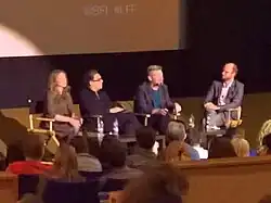 ![]() Jones (left) with Joe Wright and Charlie Brooker at the screening of the Black Mirror episode "Nosedive" at the 2016 BFI London Film Festival | |