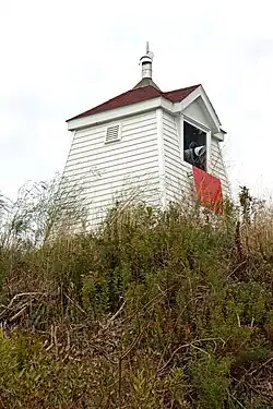 The Annandale Range Lights are a set of range lights on the east coast of Prince Edward Island, Canada. The range was established in 1898 but is now inactive. The original front range light was relocated in 1990, and was replaced by a new building of a similar design that now operates as a sector light.[1] The lights are white pyramid-shaped structures of different heights, each with a red vertical stripe.