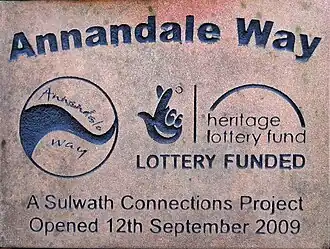- ^ "Sulwath Connections Landscape Partnership. This web page has pictures and information about the route and a particularly good map of it which when saved to a desktop will allow magnification that is not available on the site's web page". Archived from the original on 11 April 2012. Retrieved 23 February 2012.