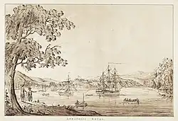 "Port Royal" originally referred to the Annapolis Basin and was named by cartographer Samuel de Champlain in 1604, writing, "we entered a harbour which is two leagues in length and one in breadth, which I have named Port Royal."[13] The French settlement on the Annapolis Basin was named "Annapolis Royal" in honour of Queen Anne following the siege of Port Royal in 1710 by Great Britain.[14]
