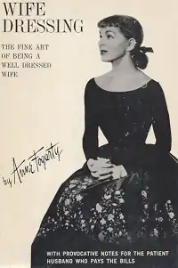 ![]() Anne Fogarty wearing one of her own dresses, on the first edition of her book Wife Dressing (1959) | |