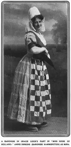 Annie Dirkens debuted as a singer in 1893, in Berlin. She appeared in operettas, including the lead breeches role in The Little Genius at London's Shaftesbury Theatre in 1896.[3] "Miss Annie Dirkens sings and plays very nicely as the little genius," a reviewer commented, "and the whole play is got up in such splendid style that it will probably have a good run."[4] in 1897 she sang the role of the Comtesse Mathilde in the premiere of Johann Strauss II's last operetta, Die Göttin der Vernunft, in Vienna.[5]
