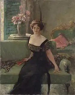 In 1910, Chase predicted that her "remarkable ability" boded well for the future of American art.[5] The New York Times praised her ability to execute "evanescent gradations of color with such authority."[6] The International Studio ranked her acquisitions of Chase's paintings as "in all probability the finest private collection of his works in this country" and described her pictures as "very direct and forceful, painted in a virile manner."[7] She worked alongside Chase at his summer schools in Florence (1910, 1911), Bruges (1912), Venice (1913), and Carmel, California (1914).
