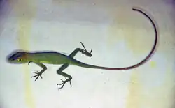 - ^ Batista, A., Velasco, J., Arredondo, J.C. & Castañeda, M.R. (2020). "Anolis purpurescens ". The IUCN Red List of Threatened Species 2020: e.T44577699A44577702. https://www.iucnredlist.org/species/44577699/44577702. Downloaded on 29 March 2021.