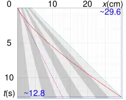 If the speed at which the rope stretches increases through time, then the ant might not reach the target. For example, imagine one end of the rope is attached to a weight that is in free fall in a uniform gravitational field, with the rope applying no force to the weight (in other words, the target point's position is given by a function of the form ). If is 1 m, is 9.81 m/s2, and the ant moves at 1 cm/s, then the ant won't cover even 0.71% of the length of the rope, despite the fact the ant is always making forward progress. However, if the ant moves at a speed greater than 1.41 m/s it will reach the end of the rope in finite time. Further there are scenarios where the speed of the ant is decreasing exponentially while the length of the rope is increasing exponentially and the ant will also reach the end of the rope in finite time.[3]