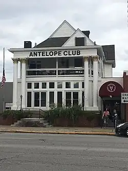 Originally built as a private residence, the Antelope Club is an example of Neo-Classical architecture. The facade includes Corinthian columns, bay windows, and a second-story balcony. Inside the club is a bar, dining room, game room, two meeting and event rooms, an office, and the Al Schilling Cigar Lounge.