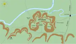 Antemnae was a town and Roman colony of ancient Latium in Italy. It was situated two miles north of ancient Rome on a hill (now Monte Antenne) commanding the confluence of the Aniene and the Tiber.[1][2] It lay west of the later Via Salaria and now lies within a park in modern Rome.