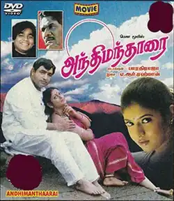Anthimanthaarai (ⓘ) (transl. Mirabilis jalapa) is a 1996 Indian Tamil-language historical drama film directed by Bharathiraja. The film stars Vijayakumar and Jayasudha.[1] It is produced by Chandraleela Bharathiraja and Thilaka Ganesh. The film won the National Award for the Best Feature Film in Tamil. The music for the film is scored by A. R. Rahman, marking his third collaboration with Bharathiraja after Kizhakku Cheemayile and Karuthamma.