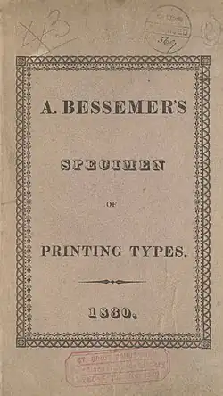 - ^ Bessemer, Anthony (1830). A. Bessemer's Specimen of Printing Types. Retrieved 30 November 2021.