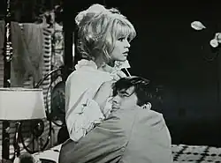 Perkins's final role portraying a psychologically disturbed character in a romantic film was in Le glaive et la balance (1963), filmed in France. The film had limited impact upon release.[101] His subsequent project was Une ravissante idiote (1964), co-starring Brigitte Bardot. Perkins became the first American actor to portray a romantic partner opposite Bardot.[102] In later interviews, he expressed discomfort during the production and stated that Bardot had been his least favorite co-star.[71][103]