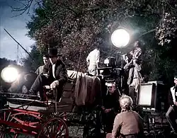 At the time, Perkins did not know how to drive and hitchhiked from his hotel, the Chateau Marmont, to the film set, a fact that was widely noted in fan magazines.[42] His partner, Tab Hunter, later taught him how to drive.[43] Perkins's lack of experience was noted by those on set, including actor Peter Mark Richman, who stated that Gary Cooper was supportive of both himself and Perkins. Wyler reportedly praised Perkins's performance, and Cooper began to publicly support Perkins's acting career.[44] The two appeared together on the July 1956 cover of Life magazine,[45] in which Cooper spoke favorably of Perkins.[44] Cooper's daughter, Maria Cooper Janis, later suggested that her father's support may have stemmed from both admiration for Perkins's talent and empathy for the challenges faced by closeted gay actors in Hollywood.[46]