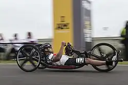 Radetic competed in different adaptive sports at a professional level until he found what he describes as "the perfect fit."[16] Radetic's wife, Danielle, suggested Personal Watercraft Racing since it was the closest to riding a motorcycle. His competitive breakthrough came in 2013 when he participated in the Never Quit Challenge that included a 1,600 watercraft journey from Florida to New York.[17] The next year, Radetic began a professional watercraft racing career in 2014 using a Sea-Doo vehicle. Competing in the first P1 AquaX tour in 2015, Radetic quickly became not only an inspiration but an American sporting legend. That year, he received the series "Athlete of the Year" award.[18] A significant international accomplishment was achieved at the 5-day 2016 Russky Grand Prix in Vladivostok, Russia where Radetic was the sole USA entrant. There, as the only disabled racer, he placed 2nd.[19]