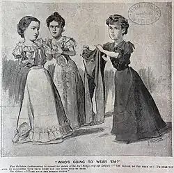 The petition that the group presented to parliament on 16 September 1900 contained 22,978 signatures.[9] The signature canvassers were accused of using disingenuous methods to gain signatures. They asked questions such as: 'Are you in favour of all the bad women of Melbourne getting into parliament?' and 'Do you want women to neglect their homes and become members of parliament?'. There were reports that factory employers were pressuring women employees to sign.[8] However, Coady stated that the signatures were attributed to many addresses from all around Victoria, and points out that there would have been more outrage if there were any large scale subterfuge. Furthermore, these opinions would have been held by many women of the era. However, Coady also states that it has been suggested that Reid and Derham may have organised the petition in collaboration with Robert Walpole, who would later become an organising secretary of the Victorian Employer's Federation, who had already established connections from his experience canvassing the state in relation to Federation. This is plausible considering his connection with both of their fathers.[10]