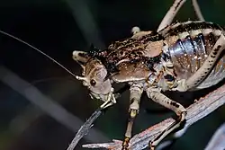 The antlered thorny katydid (Acanthoproctus cervinus) is a species of katydid that is found in South Africa and Namibia. It can be found in semi-arid and arid habitats, including the Kalahari Desert, the Namib Desert, and in the Karoo and Fynbos biomes.