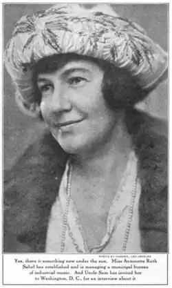 Antonette Ruth Sabel (April 23, 1894 – April 6, 1974), also seen as Antoinette Ruth Sabel, was an American music educator, composer, and arts administrator. She founded and directed the first "municipal bureau of industrial music" in the United States, in Los Angeles, California.[1]