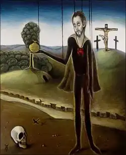 Roybal's work is inspired by Northern Renaissance Art and early Mannerism. His influences are numerous, including Jan van Eyck, El Greco, and Hieronymus Bosch. Contemporary influences include Ernst Fuchs, Remedios Varo, and Mark Ryden. Roybal's painting technique is modeled after Jan van Eyck and his followers. His work has gained greater prominence beginning in 2002 with the distinguished honor of being named one of the top 100 contemporary Hispanic artists by The National Hispanic Cultural Center. In 2006, he participated in a group show titled “Life and Liberty After 9-11” at The Las Cruces Museum of Art. Stylistically his work mixes religion, metaphysics, modern symbols such as toys and televisions with elongated stylized figures. His subject matter is influenced by Carl Jung’s work on archetypes and esoteric traditions including alchemy and metaphysics.