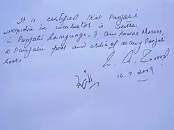 Masood certifying the launch of the Western Punjabi Wikipedia
