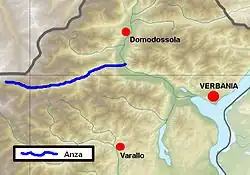 The Anza is a 35-kilometre (22 mi) Alpine torrent of the Ossola in northern Italy. It flows from the glaciers of Monte Rosa through the Valle Anzasca and into the river Toce, of which it is a right tributary.