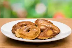 The Apfelküchle is a traditional German pastry, consisting of sliced apples dipped in batter and fried to a golden-brown color. It is popular in Baden-Württemberg, a federal state in southern Germany. The Apfelküchle has spread throughout Europe and the US. It is similar to an apple fritter but is made more like a pancake, and can be prepared in several ways. While it is traditionally eaten as a complete meal, because of its sweet taste, Apfelküchle has also become popular as a dessert.