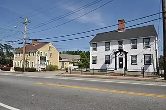 The Apponaug Historic District is a 2-acre (0.81 ha) residential historic district in the central village of Warwick, Rhode Island, which is also known as Apponaug. It consists of five properties (numbered 3376, 3384, 3387, 3391, 3397–3399, and 3404 Post Rd.) dating to no later than the early 19th century. These houses are a remnant of what was once a much larger collection of period houses in Apponaug, many of which have succumbed to modern 20th-century development of the area.[2]