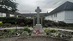 The war memorial, which is a grade II listed building,[8] and Apsley Mill Cottage, which is also grade II listed, are all that remains of Apsley Mill.[3] The remainder of the site is now occupied by Apsley Mills Retail Park (to the northwest),[9] by residential developments and the Paper Mill public house, operated by Fuller's, (behind)[10] and by the Holiday Inn Express Hemel Hempstead to the southeast.[11]