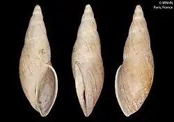 | Shell of † Apula goniostoma (syntype at MNHN, Paris) | |