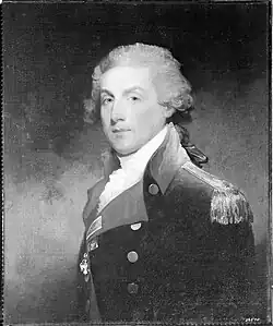 During the Revolutionary War, he served with the Patriots, first on the staff of Gen. Arthur St. Clair.[3] Giles eventually became a General.[4] Giles served alongside George Washington,[5] and "participated in all the battles of that war."[6] Upon Giles' marriage to Elizabeth Shipton, his father-in-law (who had made Elizabeth his chief heir), who was commissioned by the British as a colonel for the corps of Long Island Loyalists,[7] "entirely shook her off, and withheld every friendship & attention from her" due to Giles' support of the Patriots.[5]