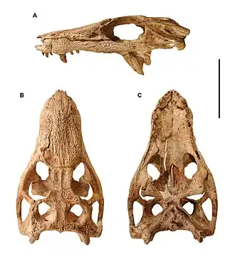 - ^ a b c d Turner, A. H. (2006). "Osteology and phylogeny of a new species of Araripesuchus (Crocodyliformes: Mesoeucrocodylia) from the Late Cretaceous of Madagascar". Historical Biology. 18 (3): 255–369. Bibcode:2006HBio...18..255T. doi:10.1080/08912960500516112. S2CID 83717721.