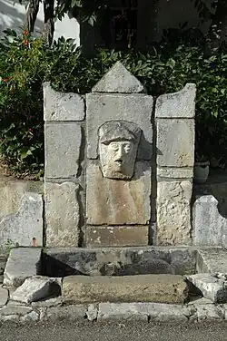 - The Fountain in the square depicting the head of a man wearing a beret whose mouth spouts water represents Leon Hegoas, called Brasquette from the house of Brasketa, which the Marquis of Arcangues predicted "that it will do him good to drink water".[11]