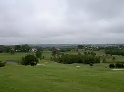 is registered as an historical monument.[27] It was rebuilt in 1900. The central body of the building, flanked by two wings, is surmounted by a glass roof which illuminates the interior of the building. It stands on a small hill in the middle of a small park planted with oaks.