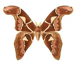 Archaeoattacus staudingeri is a species of moth in the genus Archaeoattacus found on the Malay Peninsula and on Borneo.[1] The species is a deeper, more purplish brown than A. atlas, with a more angular forewing postmedial that is edged distad by grey patches in the spaces and concave distad anterior to the angle. The forewing apical markings are grey rather than pale brown or yellow.