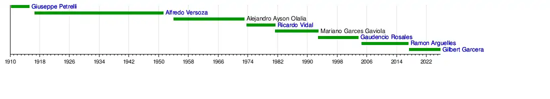 Mariano Garces Gaviola | April 13, 1981 – December 13, 1992 (11 years, 244 days) |