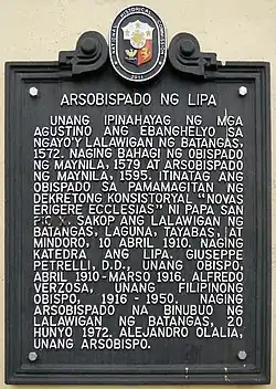 - ^ "Lipa (Catholic Metropolitan Archdiocese)". gcatholic.org. Retrieved September 16, 2023.