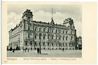 The site was occupied before by the Teleki Palace.[1] The building was the property of Archduke Joseph Karl of Austria, second son of Archduke Joseph of Austria (Palatine of Hungary).[2]