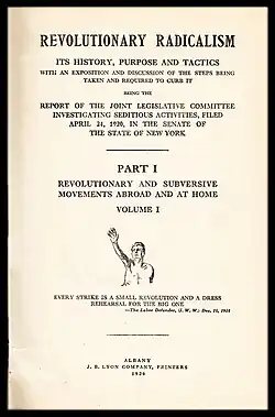 - ^ a b Julian F. Jaffee, Crusade Against Radicalism: New York During the Red Scare, 1914-1924. Port Washington, NY: Kennikat Press, 1972; p. 119.