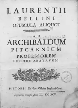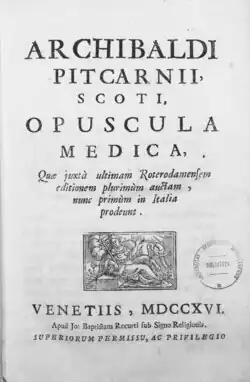 - ^ a b c d e f g h i j One or more of the preceding sentences incorporates text from a publication now in the public domain: Chisholm, Hugh, ed. (1911). "Pitcairne, Archibald". Encyclopædia Britannica. Vol. 21 (11th ed.). Cambridge University Press. p. 660.