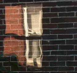 Prism glass is architectural glass which bends light. It was frequently used around the turn of the 20th century to provide natural light to underground spaces and areas far from windows.[14] Prism glass can be found on sidewalks, where it is known as vault lighting,[15] in windows, partitions, and canopies, where it is known as prism tiles, and as deck prisms, which were used to light spaces below deck on sailing ships. It could be highly ornamented; Frank Lloyd Wright created over forty different designs for prism tiles.[16] Modern architectural prism lighting is generally done with a plastic film applied to ordinary window glass. [17]