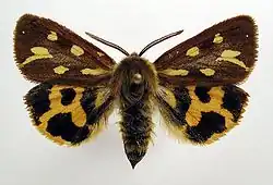 - ^ Rönkä, Katja; Mappes, Johanna; Kaila, Lauri; Wahlberg, Niklas (2016). "Putting Parasemia in its phylogenetic place: a molecular analysis of the subtribe Arctiina (Lepidoptera)". Systematic Entomology. 41 (4): 844–853. Bibcode:2016SysEn..41..844R. doi:10.1111/syen.12194. hdl:10138/176841.