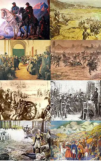 ![]() From top and left: Crossing of the Andes, Battle of Salta, 22 May 1810 Open Cabildo, Battle of San Lorenzo, Battle of Suipacha, 1813 Assembly, Shooting of Liniers, Jujuy Exodus. | |||||||