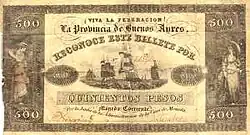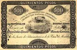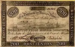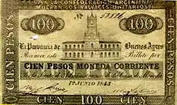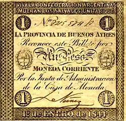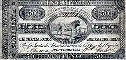 Casa de Moneda de Buenos Ayres issuesBanknotes issued during the government of Juan Manuel de Rosas (1835–1852). They included the legend "Viva la Federación".