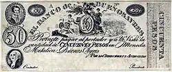 | 50 pesos | 1827 | Simón Bolivar and George Washington |